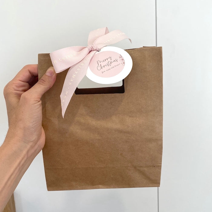 This sweet kraft gift bag comes with ribbon and swing tag and will fit 2-3 products.